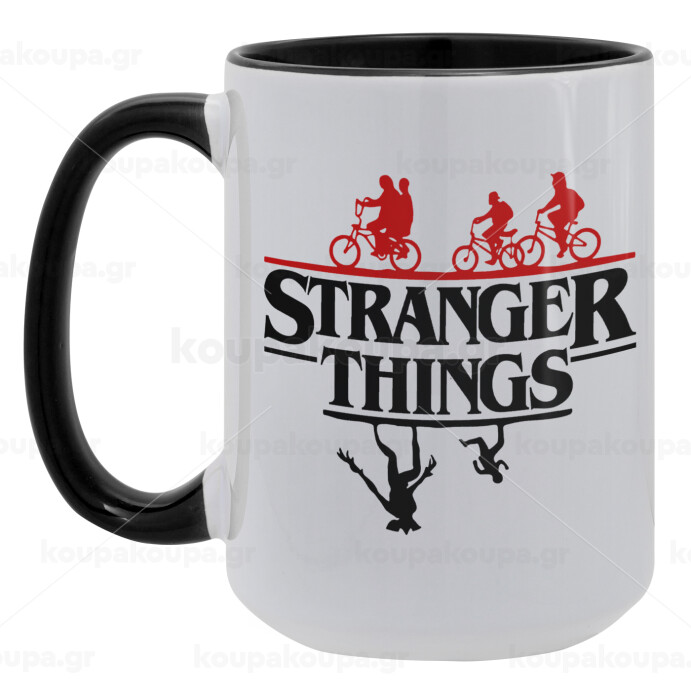 Stranger Things upside down, Κούπα Mega 15oz, κεραμική Μαύρη, 450ml