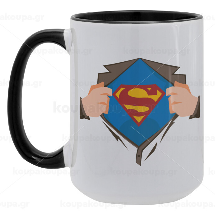 Superman hands, Κούπα Mega 15oz, κεραμική Μαύρη, 450ml