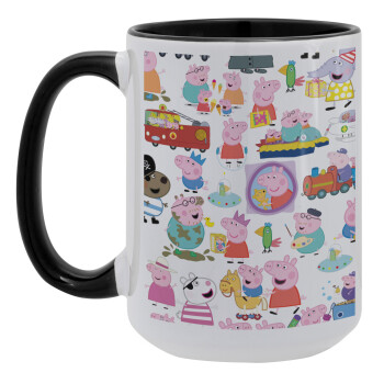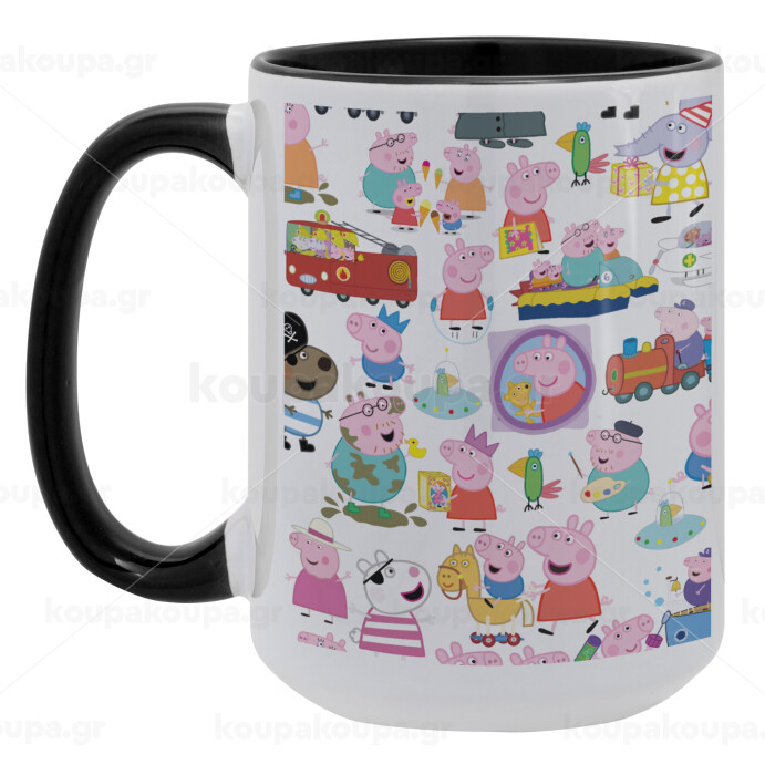 Peppa pig Characters, Κούπα Mega 15oz, κεραμική Μαύρη, 450ml