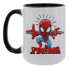 Spiderman flying, Κούπα Mega 15oz, κεραμική Μαύρη, 450ml