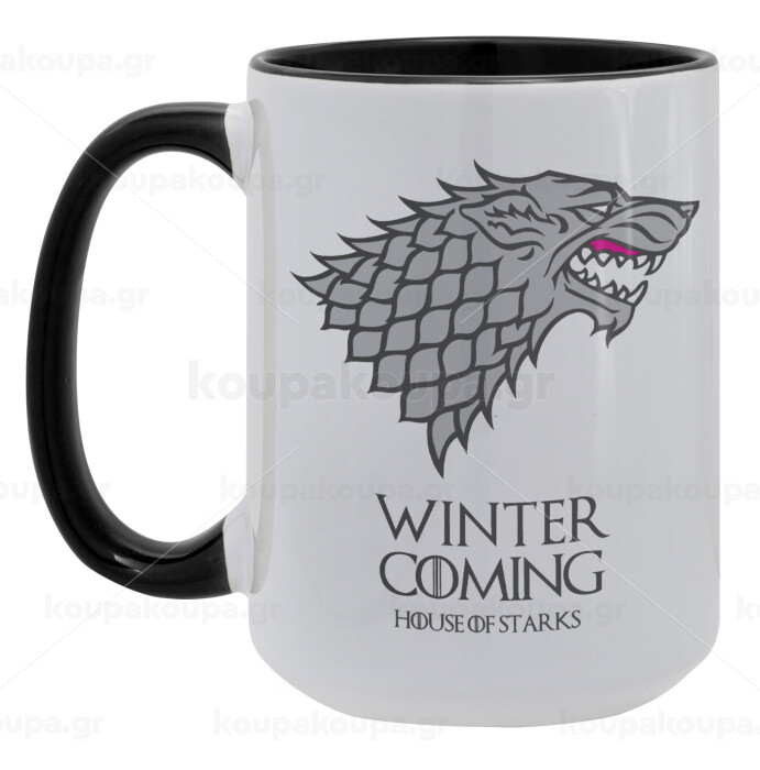 GOT House of Starks, winter coming, Κούπα Mega 15oz, κεραμική Μαύρη, 450ml
