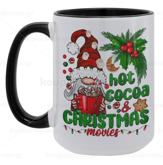 Hot cocoa and Christmas movies, Κούπα Mega 15oz, κεραμική Μαύρη, 450ml