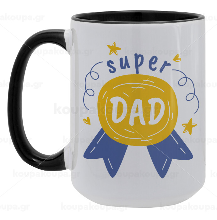 Μπαμπά είσαι για μετάλλιο, Κούπα Mega 15oz, κεραμική Μαύρη, 450ml