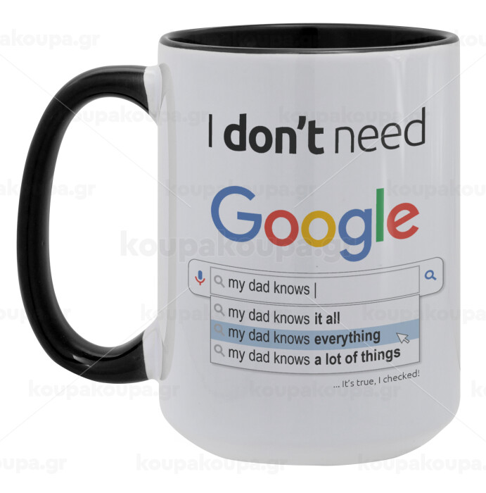 I don't need Google my dad..., Κούπα Mega 15oz, κεραμική Μαύρη, 450ml