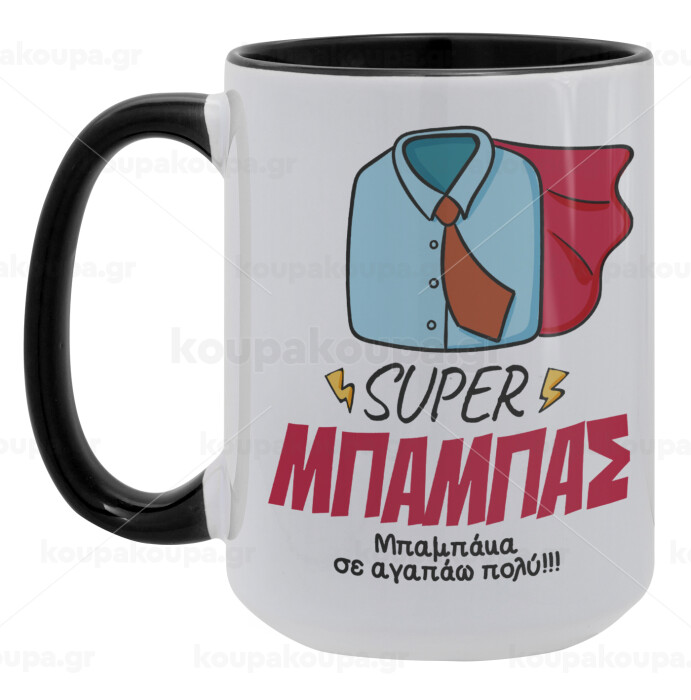 SUPER ΜΠΑΜΠΑΣ, Κούπα Mega 15oz, κεραμική Μαύρη, 450ml