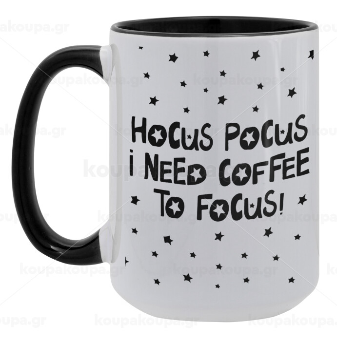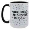 Hocus pocus i need coffee to focus - halloween, Κούπα Mega 15oz, κεραμική Μαύρη, 450ml