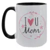 I Love you Mom pink, Κούπα Mega 15oz, κεραμική Μαύρη, 450ml