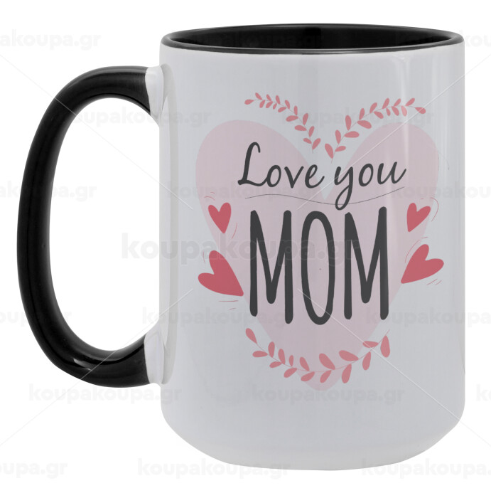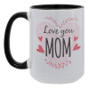 Mother's day I Love you Mom heart, Κούπα Mega 15oz, κεραμική Μαύρη, 450ml