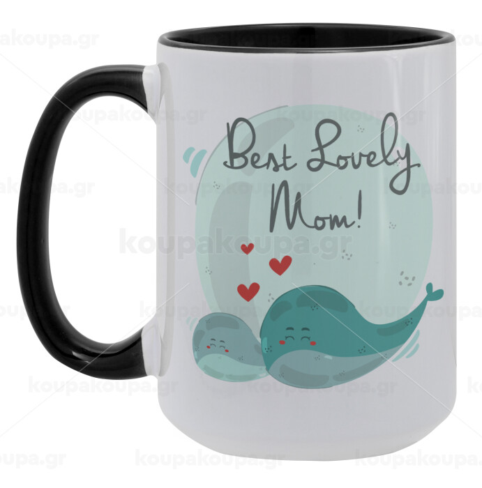 Mothers Day, whales, Κούπα Mega 15oz, κεραμική Μαύρη, 450ml