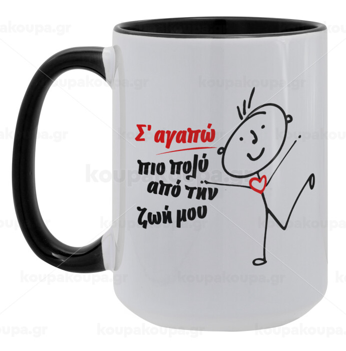 Σ'αγαπώ πιο πολύ από την ζωή μου!!!, Κούπα Mega 15oz, κεραμική Μαύρη, 450ml