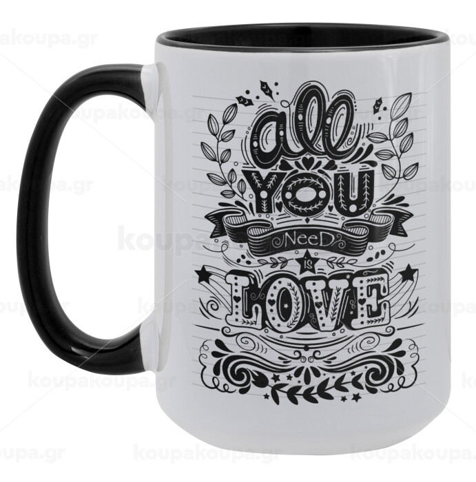 All you need is love, Κούπα Mega 15oz, κεραμική Μαύρη, 450ml