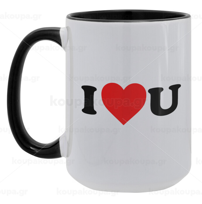I ❤️ U, Κούπα Mega 15oz, κεραμική Μαύρη, 450ml