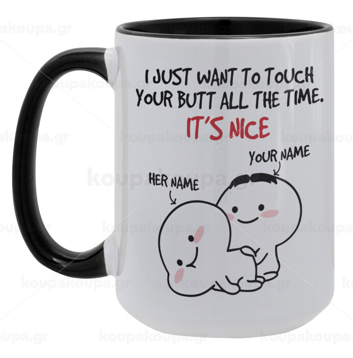 I Just Want To Touch Your Butt All The Time, Κούπα Mega 15oz, κεραμική Μαύρη, 450ml