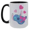 Lilo & Stitch hugs and hearts, Κούπα Mega 15oz, κεραμική Μαύρη, 450ml