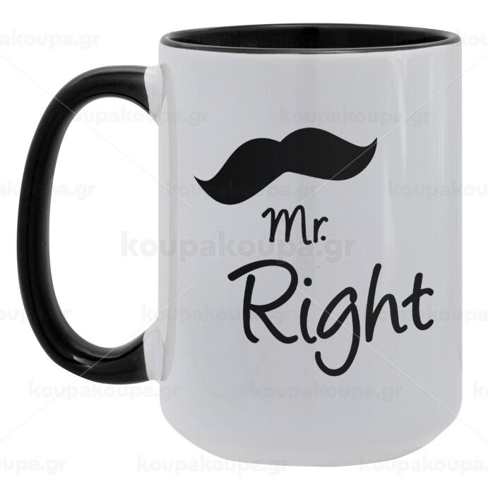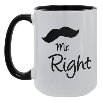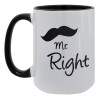 Mr right Mustache, Κούπα Mega 15oz, κεραμική Μαύρη, 450ml