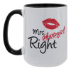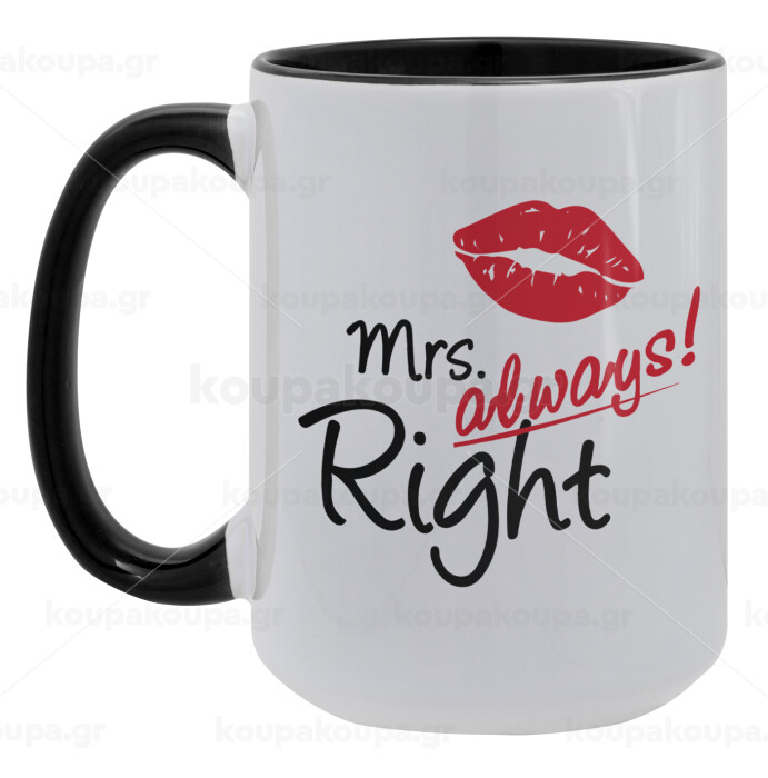Mrs always right kiss, Κούπα Mega 15oz, κεραμική Μαύρη, 450ml