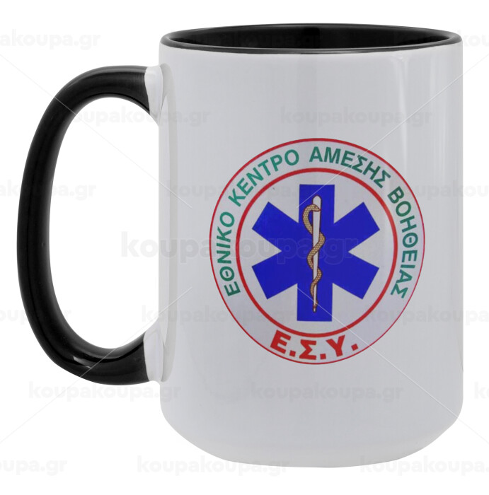 ΕΚΑΒ, Κούπα Mega 15oz, κεραμική Μαύρη, 450ml