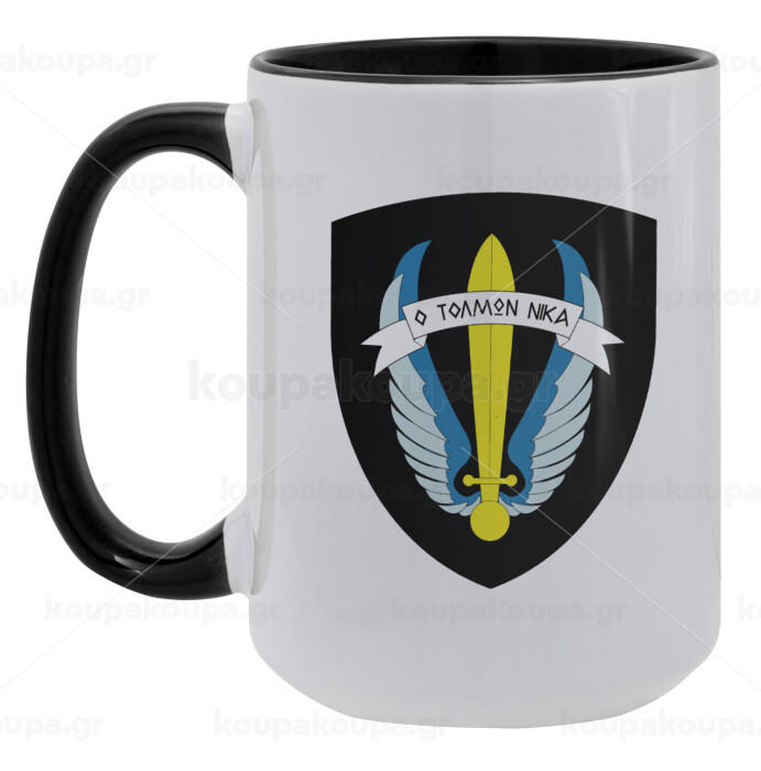 Έμβλημα Μονάδων Καταδρομών Ο Τολμων Νικα - Λοκ, Κούπα Mega 15oz, κεραμική Μαύρη, 450ml