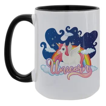 Μονόκερος, Κούπα Mega 15oz, κεραμική Μαύρη, 450ml