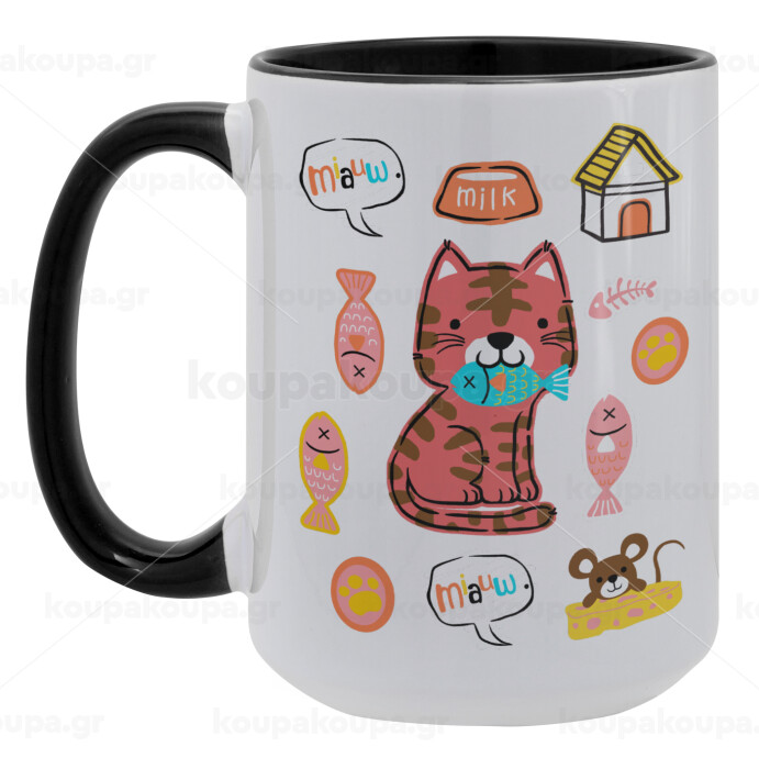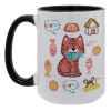 Cats and Fishes, Κούπα Mega 15oz, κεραμική Μαύρη, 450ml