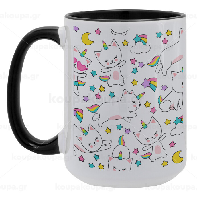 Cats unicorns, Κούπα Mega 15oz, κεραμική Μαύρη, 450ml