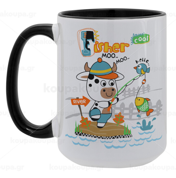 Kids Fisherman, Κούπα Mega 15oz, κεραμική Μαύρη, 450ml