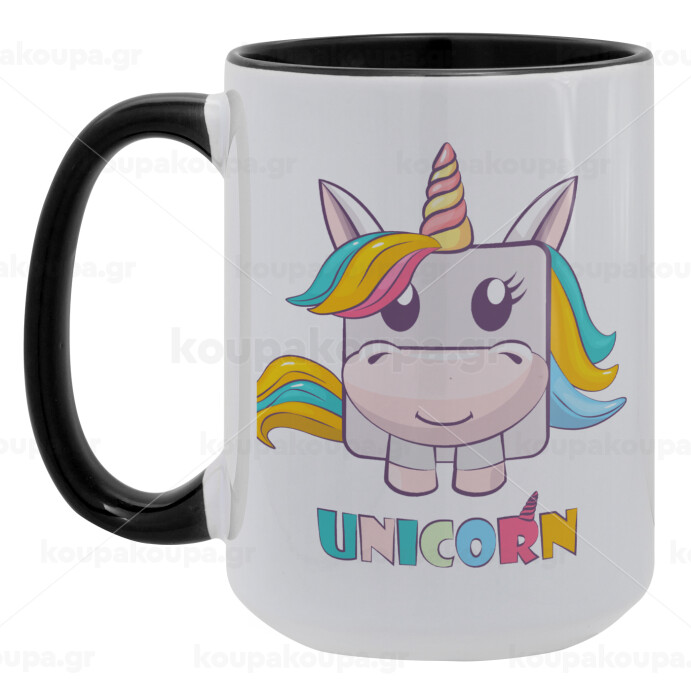 Unicorns cube, Κούπα Mega 15oz, κεραμική Μαύρη, 450ml