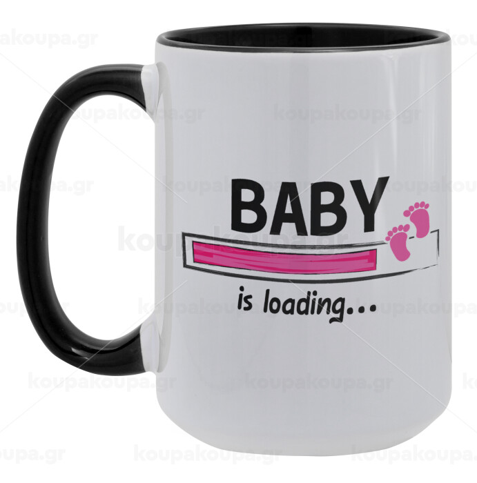 Baby is Loading GIRL, Κούπα Mega 15oz, κεραμική Μαύρη, 450ml