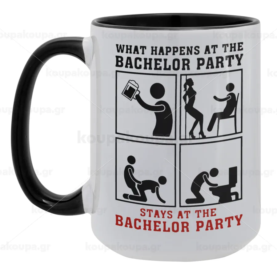 What happens at the bachelor party, stays at the bachelor party!, Κούπα Mega 15oz, κεραμική Μαύρη, 450ml