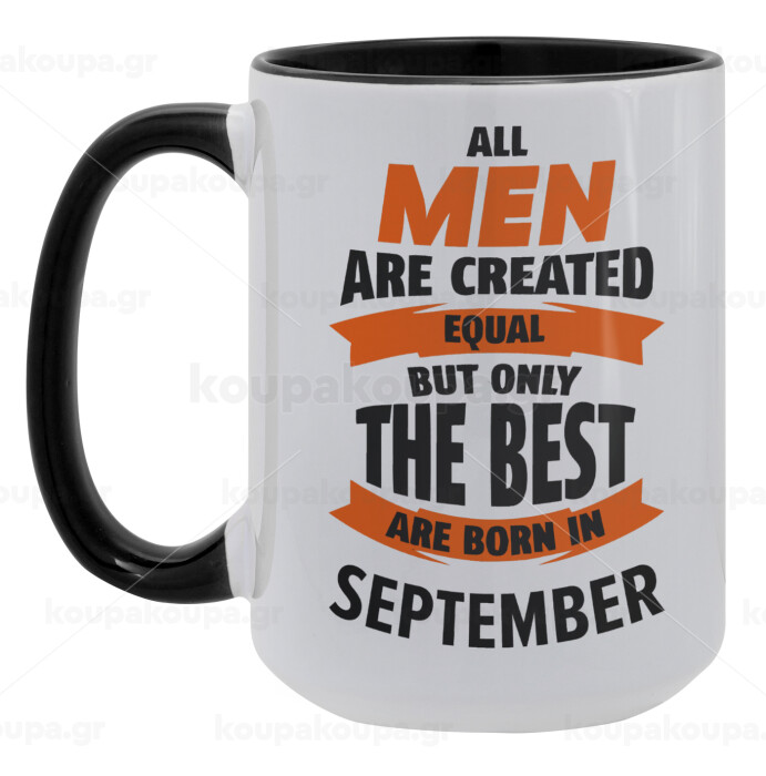 All men are created equal but only the best are born in September, Κούπα Mega 15oz, κεραμική Μαύρη, 450ml