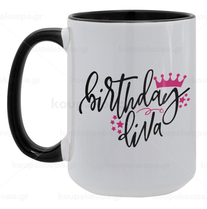 Birthday Diva queen, Κούπα Mega 15oz, κεραμική Μαύρη, 450ml