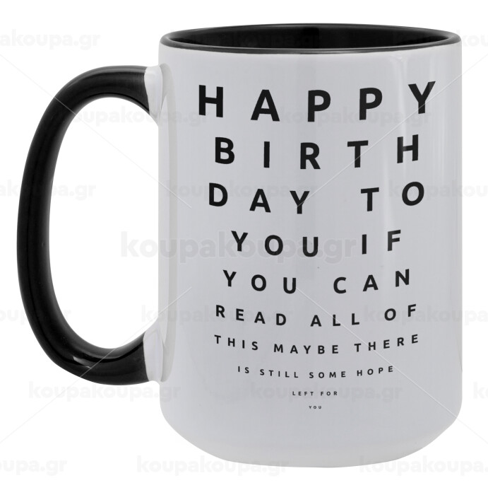 EYE tester happy birthday., Κούπα Mega 15oz, κεραμική Μαύρη, 450ml