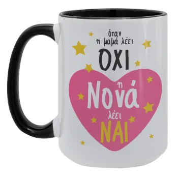 Η νονά λέει ναι!!!, Κούπα Mega 15oz, κεραμική Μαύρη, 450ml