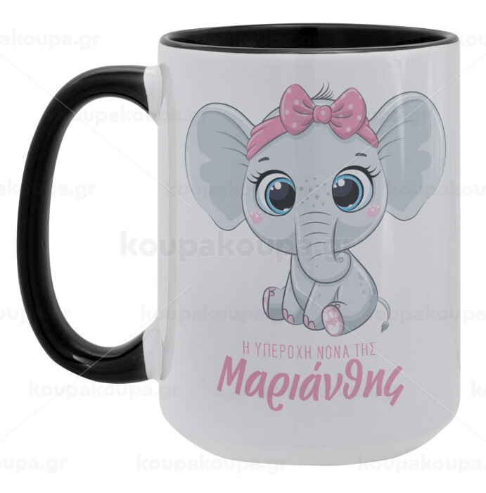 Η νονά μου, ελεφαντάκι ροζ, Κούπα Mega 15oz, κεραμική Μαύρη, 450ml