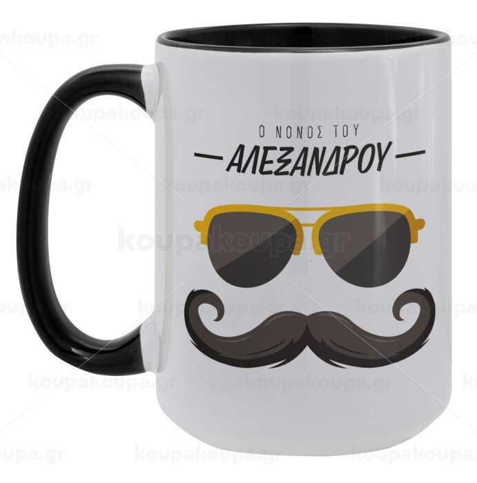 Ο νονός μου, μουστάκι με γυαλιά, Κούπα Mega 15oz, κεραμική Μαύρη, 450ml