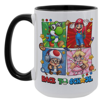 Back to the School Mario & Friends, Κούπα Mega 15oz, κεραμική Μαύρη, 450ml