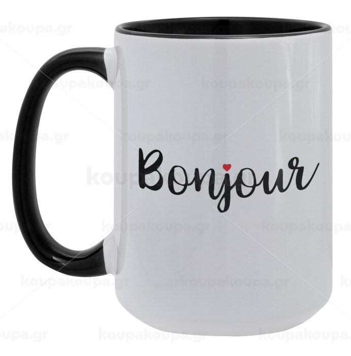 Bonjour, Κούπα Mega 15oz, κεραμική Μαύρη, 450ml