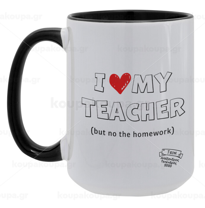 i love my teacher but no the homework outline, Κούπα Mega 15oz, κεραμική Μαύρη, 450ml