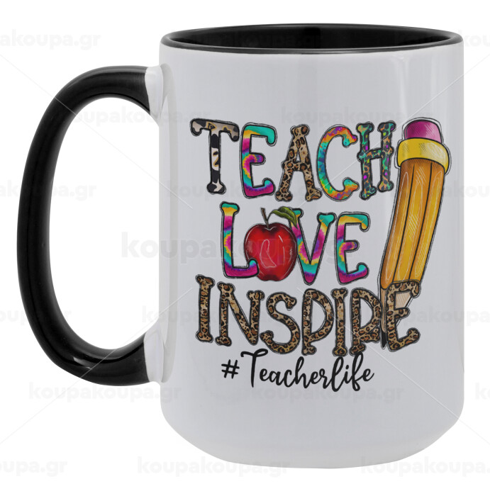 Teach, Love, Inspire, Κούπα Mega 15oz, κεραμική Μαύρη, 450ml