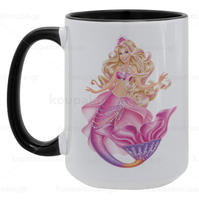 Barbie mermaid blue, Κούπα Mega 15oz, κεραμική Μαύρη, 450ml