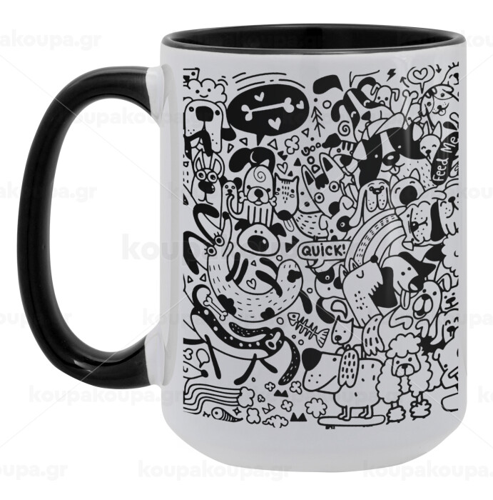 DOG pattern, Κούπα Mega 15oz, κεραμική Μαύρη, 450ml