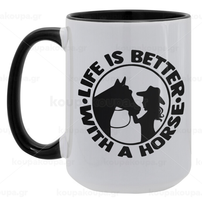 Life is Better with a Horse, Κούπα Mega 15oz, κεραμική Μαύρη, 450ml