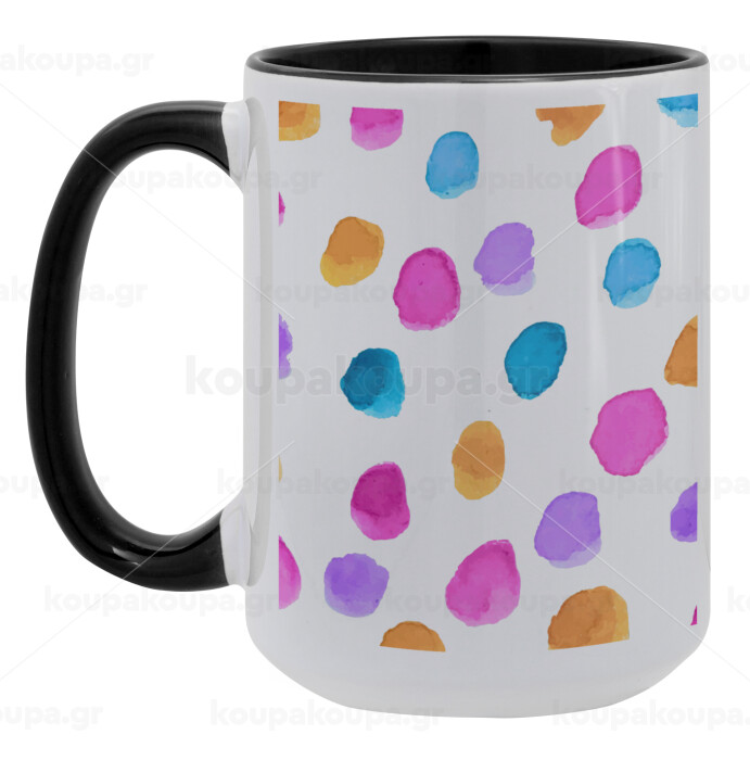 Watercolor dots, Κούπα Mega 15oz, κεραμική Μαύρη, 450ml