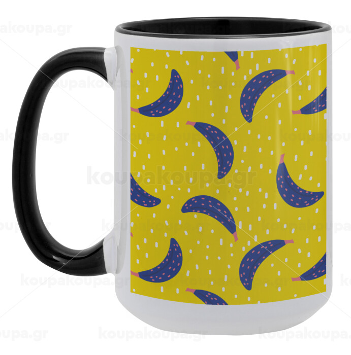 Yellow seamless with blue bananas, Κούπα Mega 15oz, κεραμική Μαύρη, 450ml