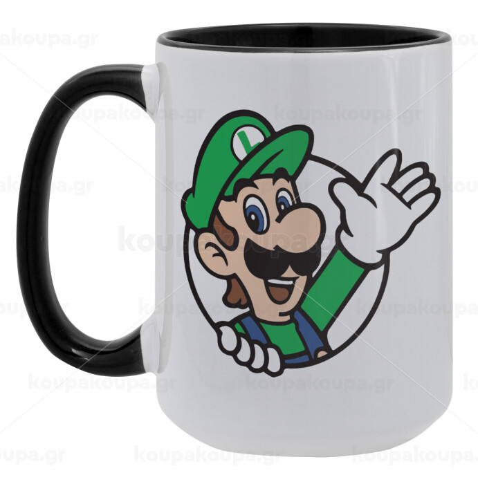 Super mario Luigi win, Κούπα Mega 15oz, κεραμική Μαύρη, 450ml