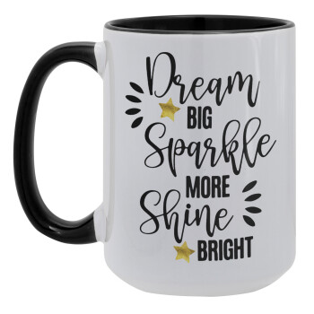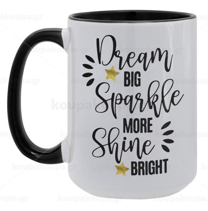 Dream big, Sparkle more, Shine bright, Κούπα Mega 15oz, κεραμική Μαύρη, 450ml