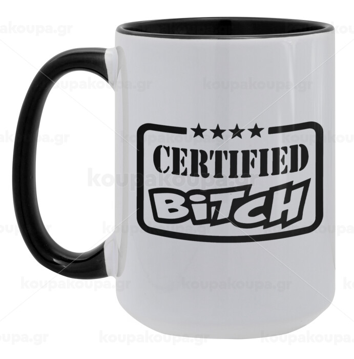 Certified Bitch, Κούπα Mega 15oz, κεραμική Μαύρη, 450ml