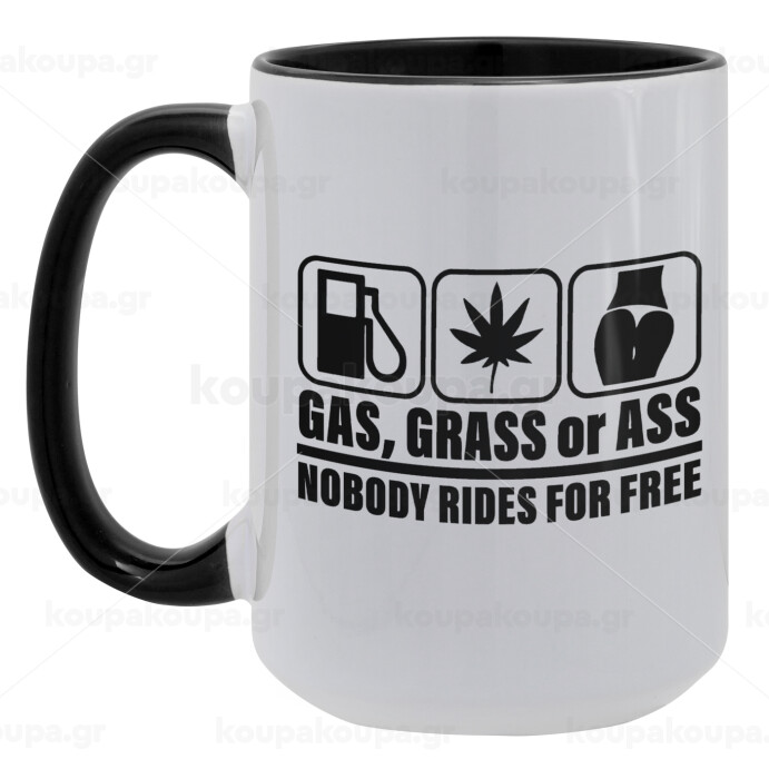 Gas, Grass or Ass, Κούπα Mega 15oz, κεραμική Μαύρη, 450ml