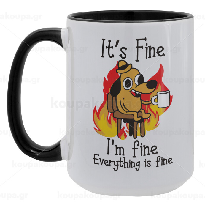 It's Fine I'm Fine Everything Is Fine, Κούπα Mega 15oz, κεραμική Μαύρη, 450ml