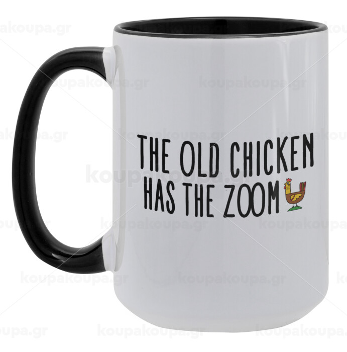 The old chicken has the zoom, Κούπα Mega 15oz, κεραμική Μαύρη, 450ml